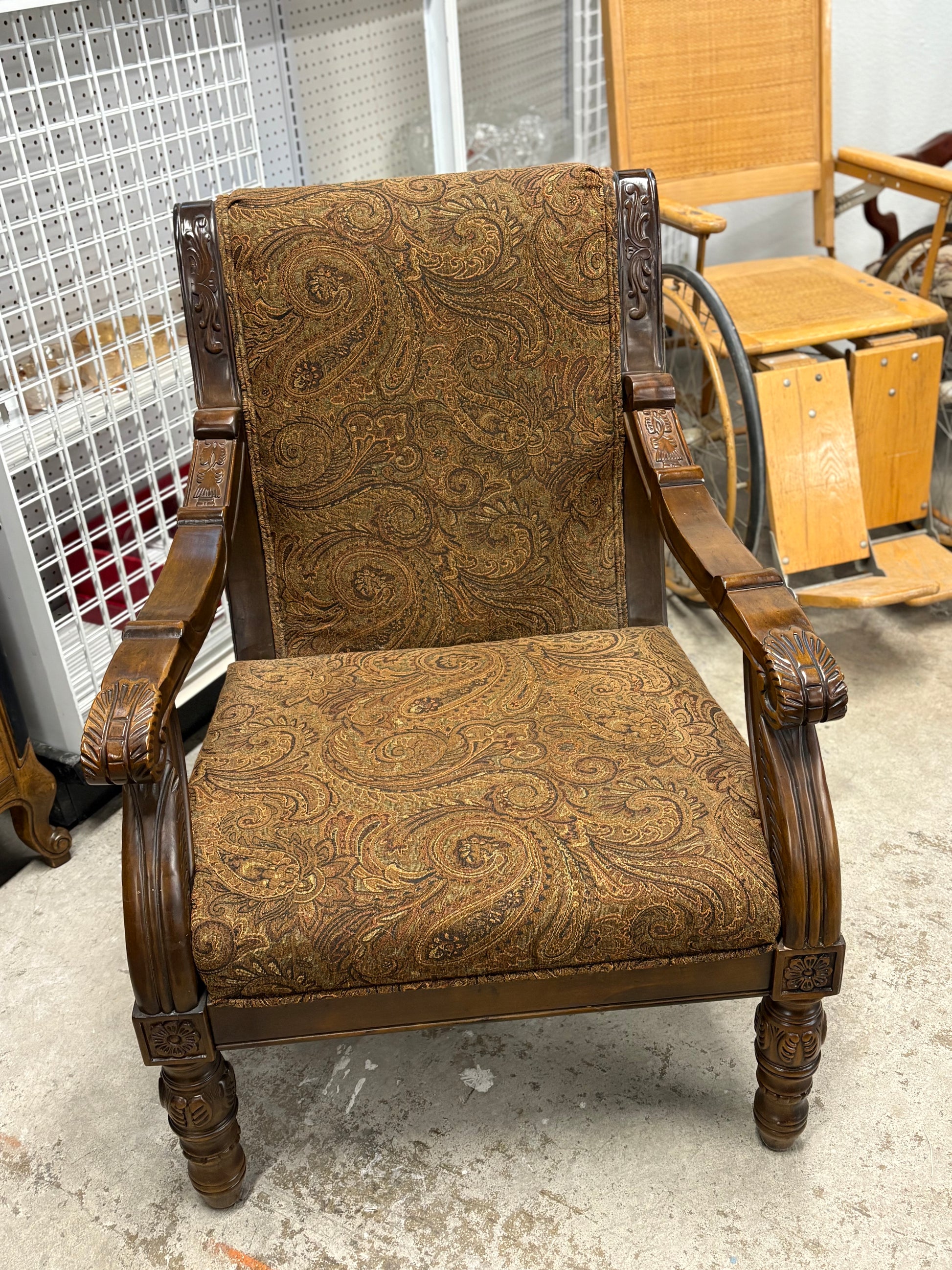 Discover refined comfort in the Bradington Truffle Accent Chair, where architectural elegance meets luxurious comfort. Decorative flourishes accent the shapely legs and high back, while the intricate paisley upholstery introduces warmth and dimension to your space. A curated piece for those who appreciate quality craftsmanship and timeless design sensibility.