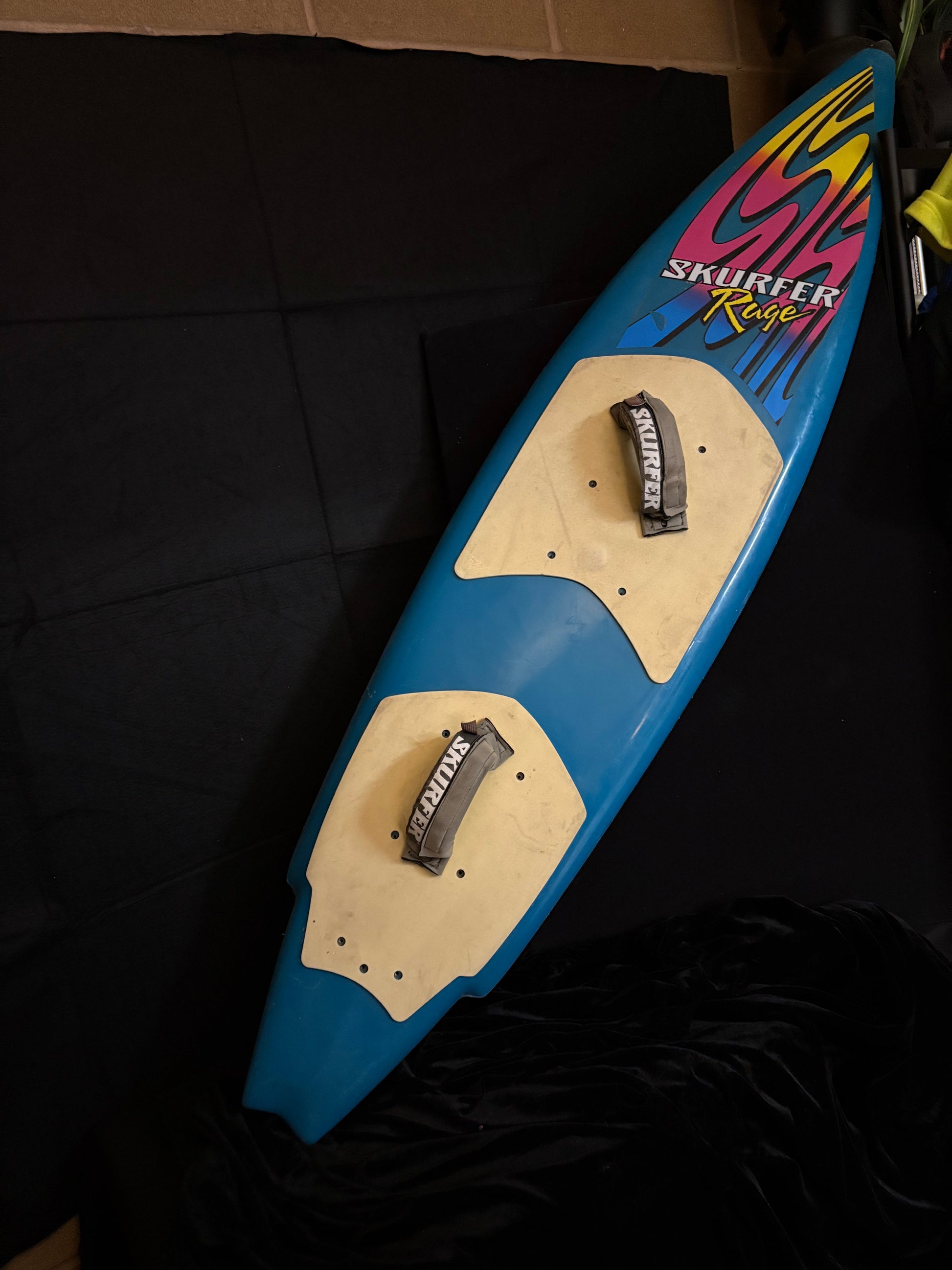 The Skurfer Rage Board is where it all began. Invented by Tony Finn in the early 1980s, this trailblazing board created an entirely new sport by blending water skiing and surfing into one thrilling experience. Recognized as the first-ever wake board, the Rage Board stands as a watershed moment in action sports history. Its vintage construction and retro color palette evoke the fearless innovation of that era. Collectors and enthusiasts treasure this iconic piece—a nostalgic display that tells the story of how one board changed everything.